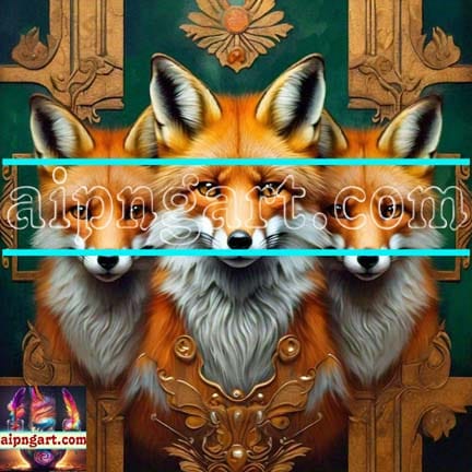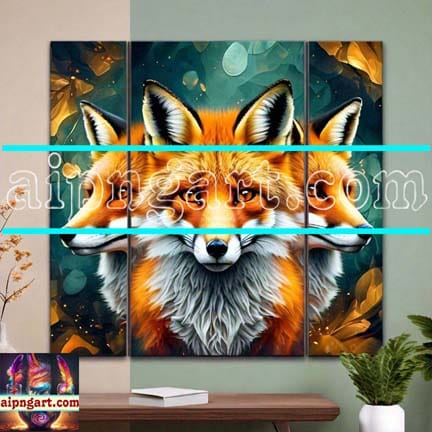 FOX Face Golden Frame Artistic Digital Wall Art Decor _15