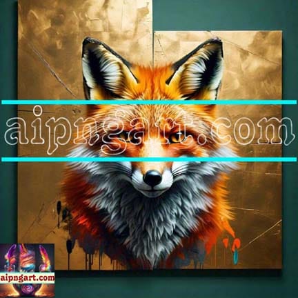 FOX Face Golden Frame Artistic Digital Wall Art Decor _97