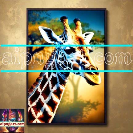 Giraffe Face Golden Frame Natural Artistic Digital Wall Art Home Decor