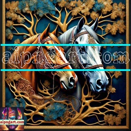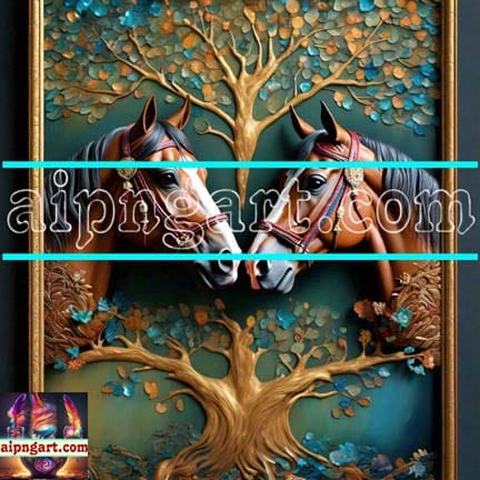 Horse Face Golden Frame Artistic Digital Wall Art Decor _16