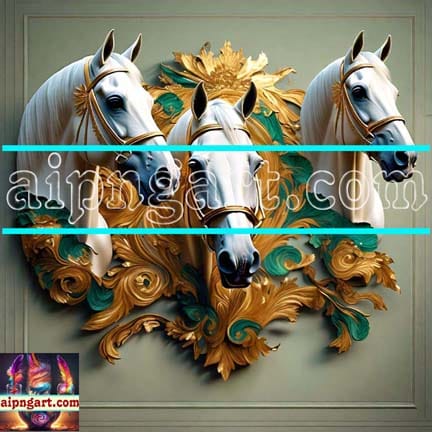Horse Face Golden Frame Artistic Digital Wall Art Decor _03
