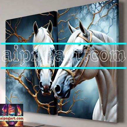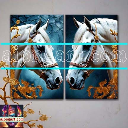 Horse Face Golden Frame Artistic Digital Wall Art Decor _53
