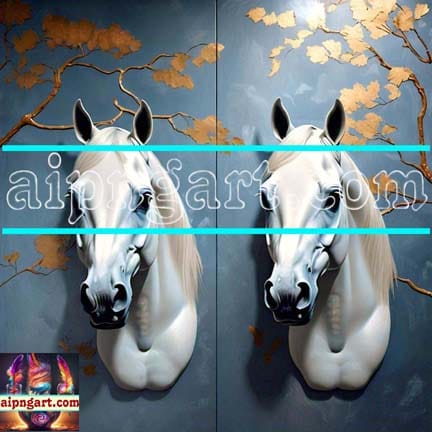 Horse Face Golden Frame Artistic Digital Wall Art Decor _61
