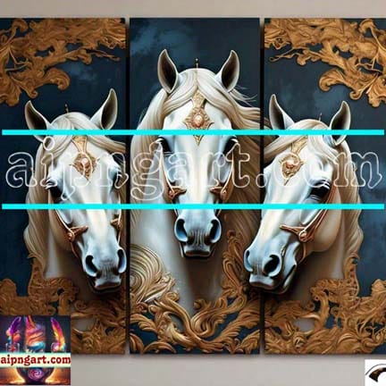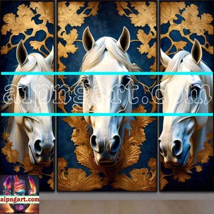 Horse Face Golden Frame Artistic Digital Wall Art Decor _67