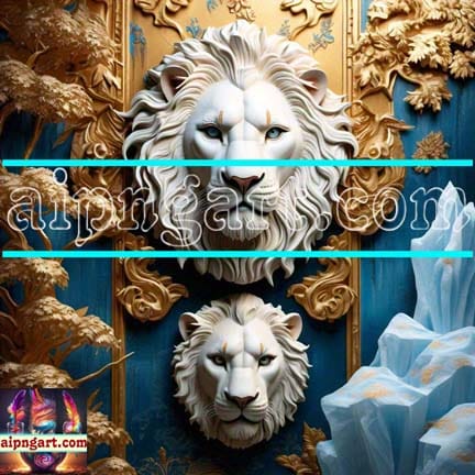 Lion Face Gold 3D Artistic Digital Wall Art Home Décor _27