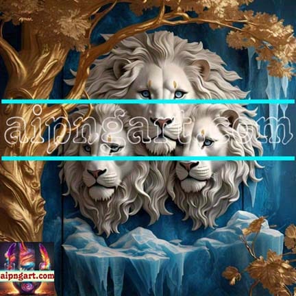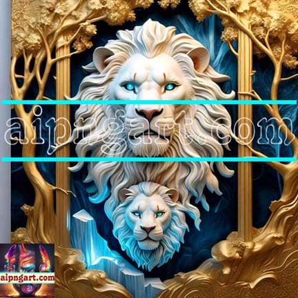 Lion Face Golden 3D Frame Natural Artistic Digital Wall Art Home Decor