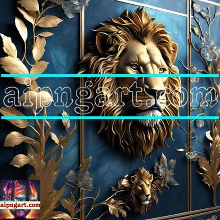 Lion Face Gold 3D Artistic Digital Wall Art Home Décor _42
