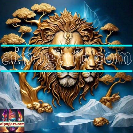 Lion Face Gold 3D Artistic Digital Wall Art Home Décor _41