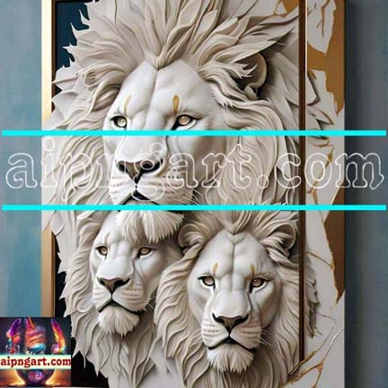 Lion Face Golden 3D Frame Natural Artistic Digital Wall Art Home Decor