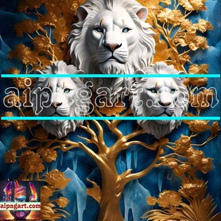 Lion Face Golden 3D Frame Natural Artistic Digital Wall Art Home Decor