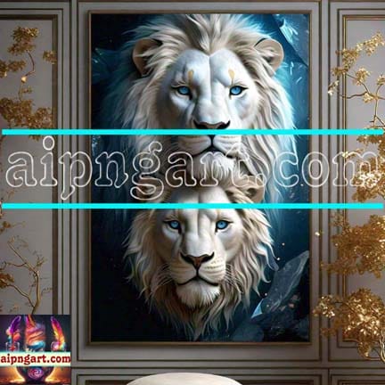 Mystical Awakening Lion Face Man and Women Artistic Design Digital Wall Art Home Decor