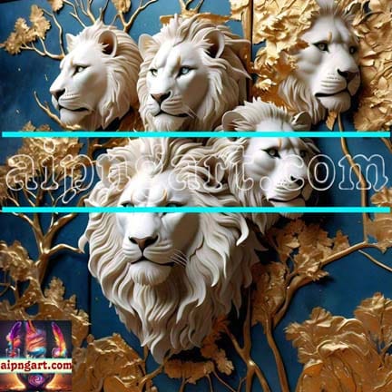 Lion Face Golden 3D Frame Natural Artistic Digital Wall Art Home Decor