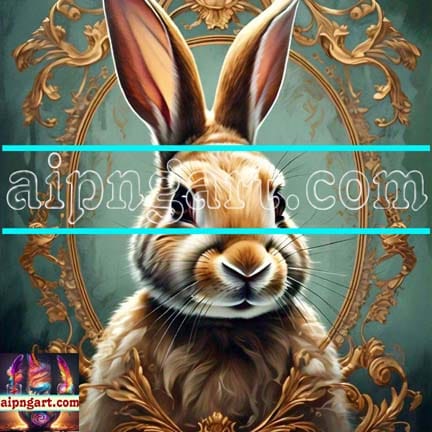 Rabbit Face Gold Frame Artistic Digital Wall Art Decor _47
