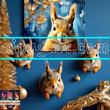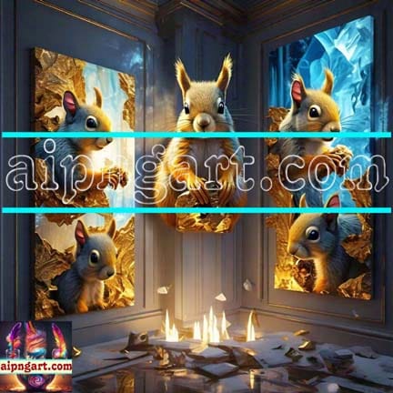Squirrel Face Gold Frame Artistic Digital Wall Art Home _12