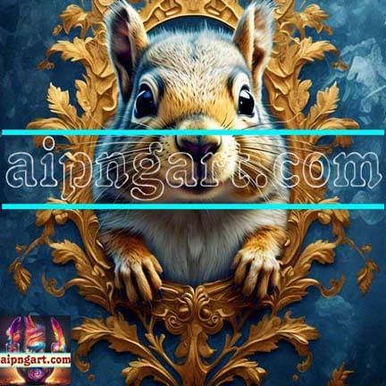 Squirrel Face Gold Frame Artistic Digital Wall Art Home _47