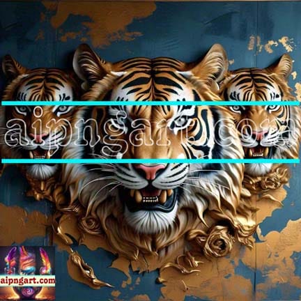 Tiger Face Gold Frame Artistic Digital Wall Art Decor _11