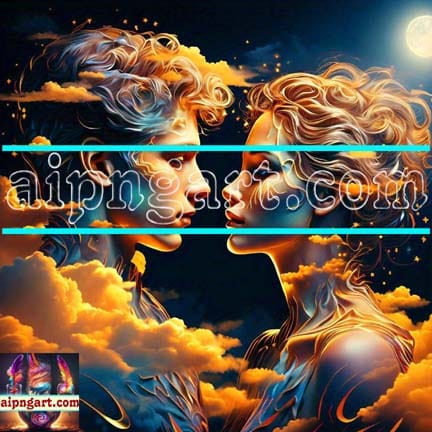 Mystical Awakening Lion Face Man and Women Artistic Design Digital Wall Art Home Decor