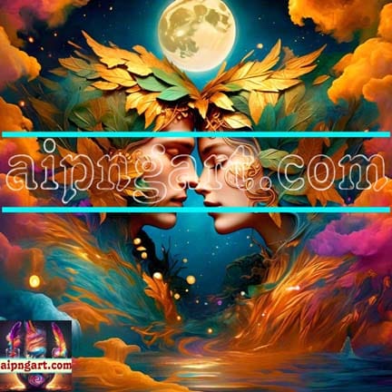 Mystical Awakening Lion Face Man and Women Artistic Design Digital Wall Art Home Decor