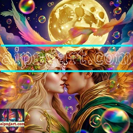 Couple Love Golden Moon Natural Artistic Digital Wall Art Home Decor
