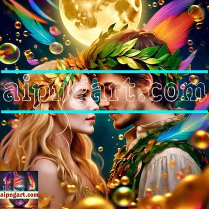 Mystical Awakening Lion Face Man and Women Artistic Design Digital Wall Art Home Decor