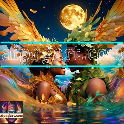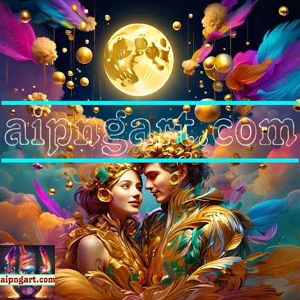 Couple Love Golden Moon Natural Artistic Digital Wall Art Home Decor