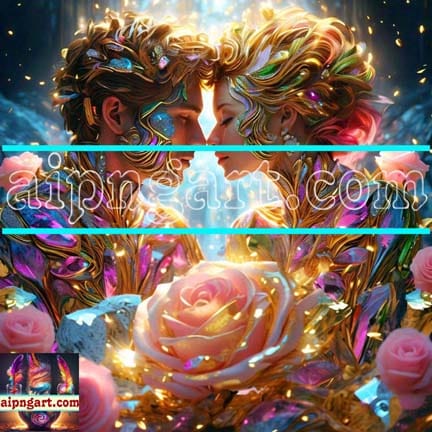 Couple Love Golden Rose Natural Artistic Digital Wall Art Home decor