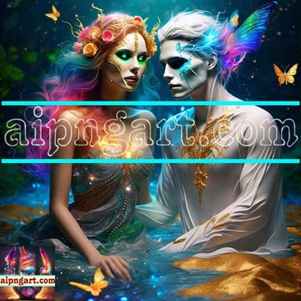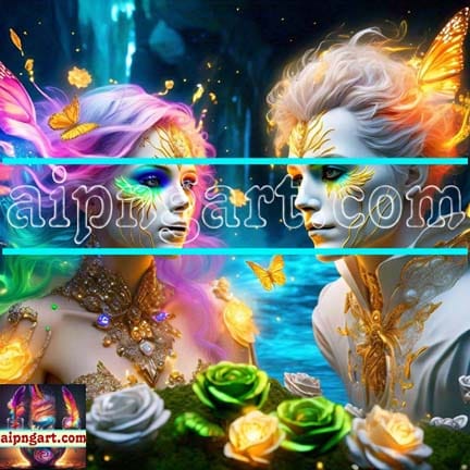 Mystical Awakening Lion Face Man and Women Artistic Design Digital Wall Art Home Decor