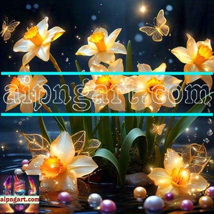 Daffodil Flower Nature Artist Digital Wall Art Hom Decor _01