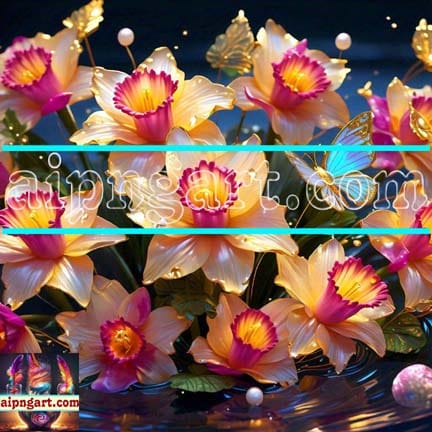 Daffodil Flower Nature Artist Digital Wall Art Hom Decor _139