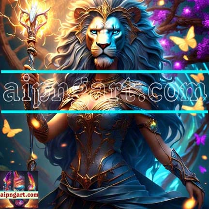 Mystical Awakening Lion Face Women Artistic Design Digital Wall Art Home Decor
