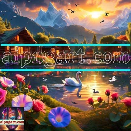 Sunrise Glowing Hut Artistic Digital Wall Art Home Décor _183