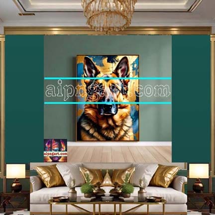 Dog Face Golden Frame Natural Artistic Digital Wall Art of Our Magnificent Home And Decor