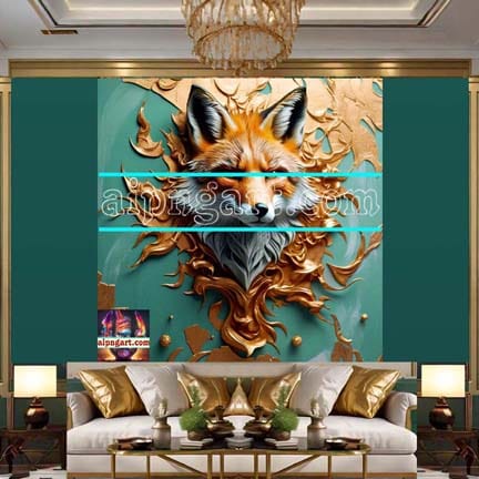 FOX Face Golden Frame Artistic Digital Wall Art Decor _117