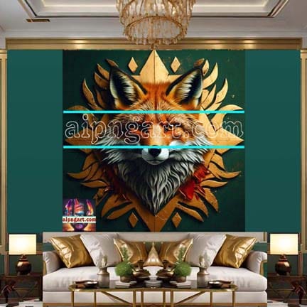FOX Face Golden Frame Artistic Digital Wall Art Decor _119