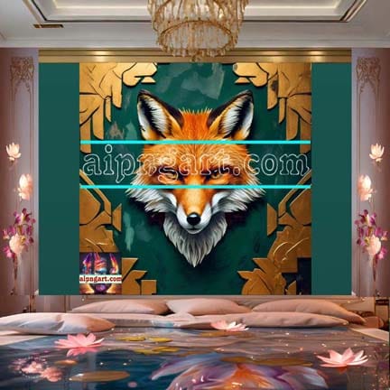 Fox Face Golden Frame Natural Artistic Digital Wall Art of Our Magnificent Home And Decor