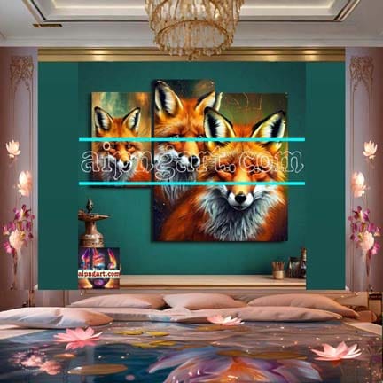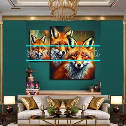 FOX Face Golden Frame Artistic Digital Wall Art Decor _59