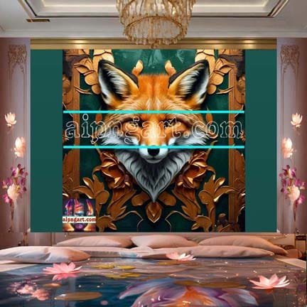 Fox Face Golden Frame Natural Artistic Digital Wall Art of Our Magnificent Home And Decor