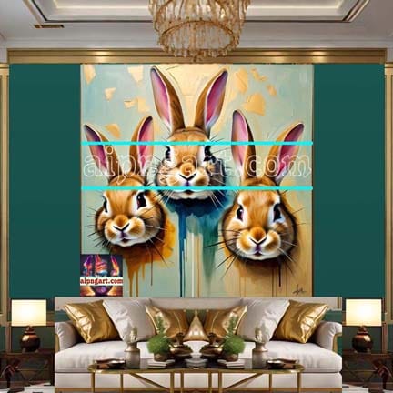 Rabbit Face Golden Frame Natural Artistic Digital Wall Art of Our Magnificent Home Peace And Decor