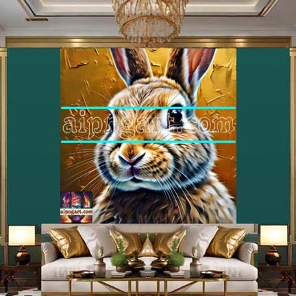 Rabbit Face Golden Frame Natural Artistic Digital Wall Art of Our Magnificent Home Peace And Decor