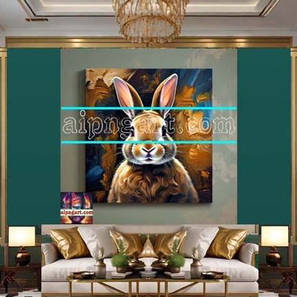 Rabbit Face Golden Frame Natural Artistic Digital Wall Art of Our Magnificent Home Peace And Decor