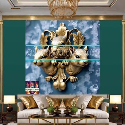Squirrel Face Gold Frame Artistic Digital Wall Art Home _22