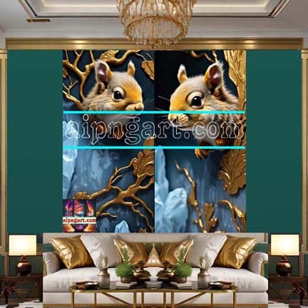Squirrel Face Gold Frame Artistic Digital Wall Art Home _30