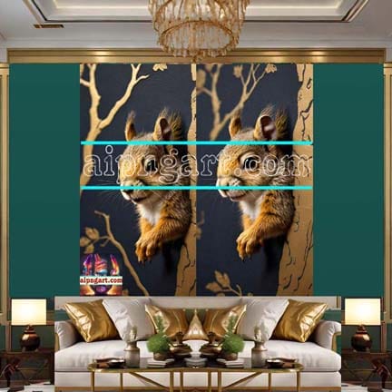 Squirrel Face Gold Frame Artistic Digital Wall Art Home _43